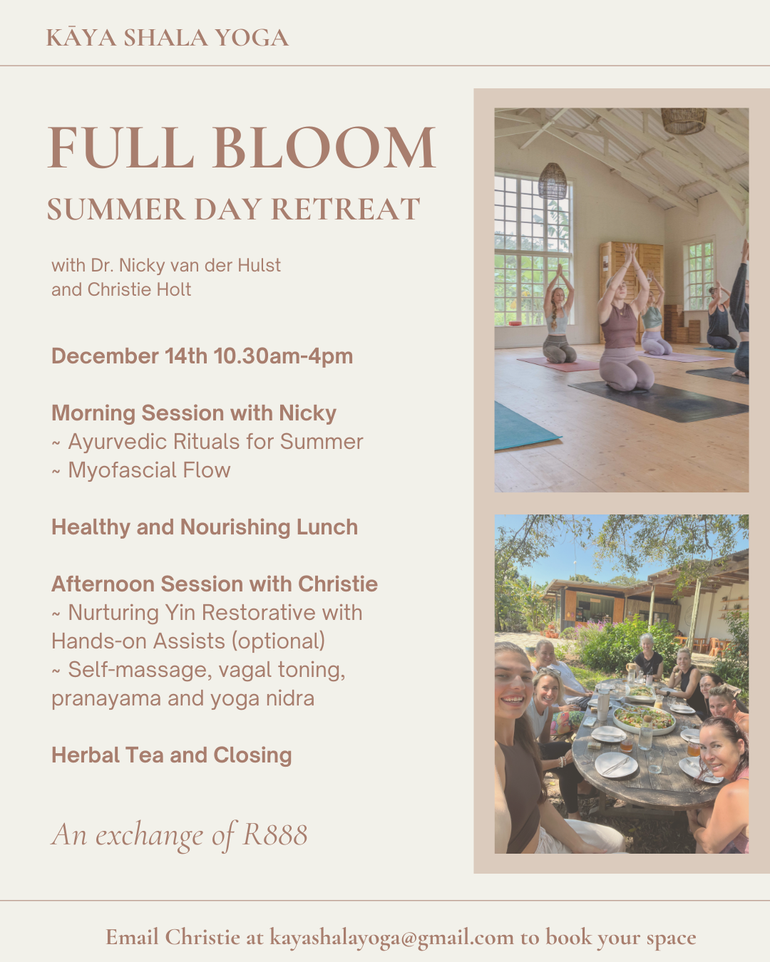 As the year comes to a close, Full Bloom invites you into a day of reflection, celebration, and deep replenishment. This summer retreat is your moment to pause, acknowledge how you’ve grown, and honour the many ways you’ve bloomed throughout the year.